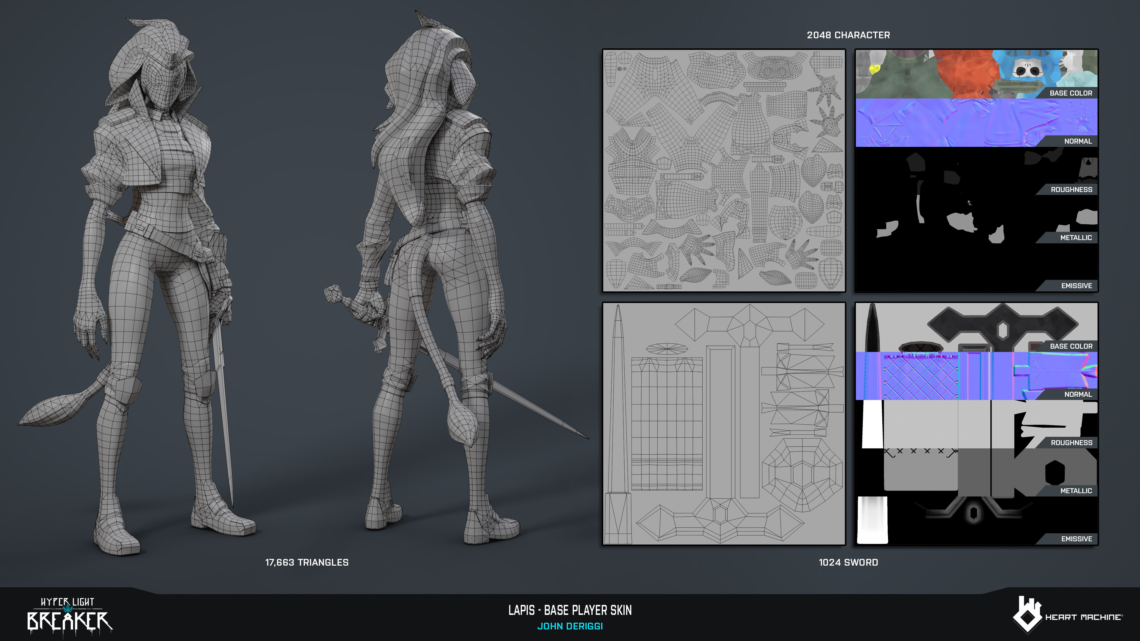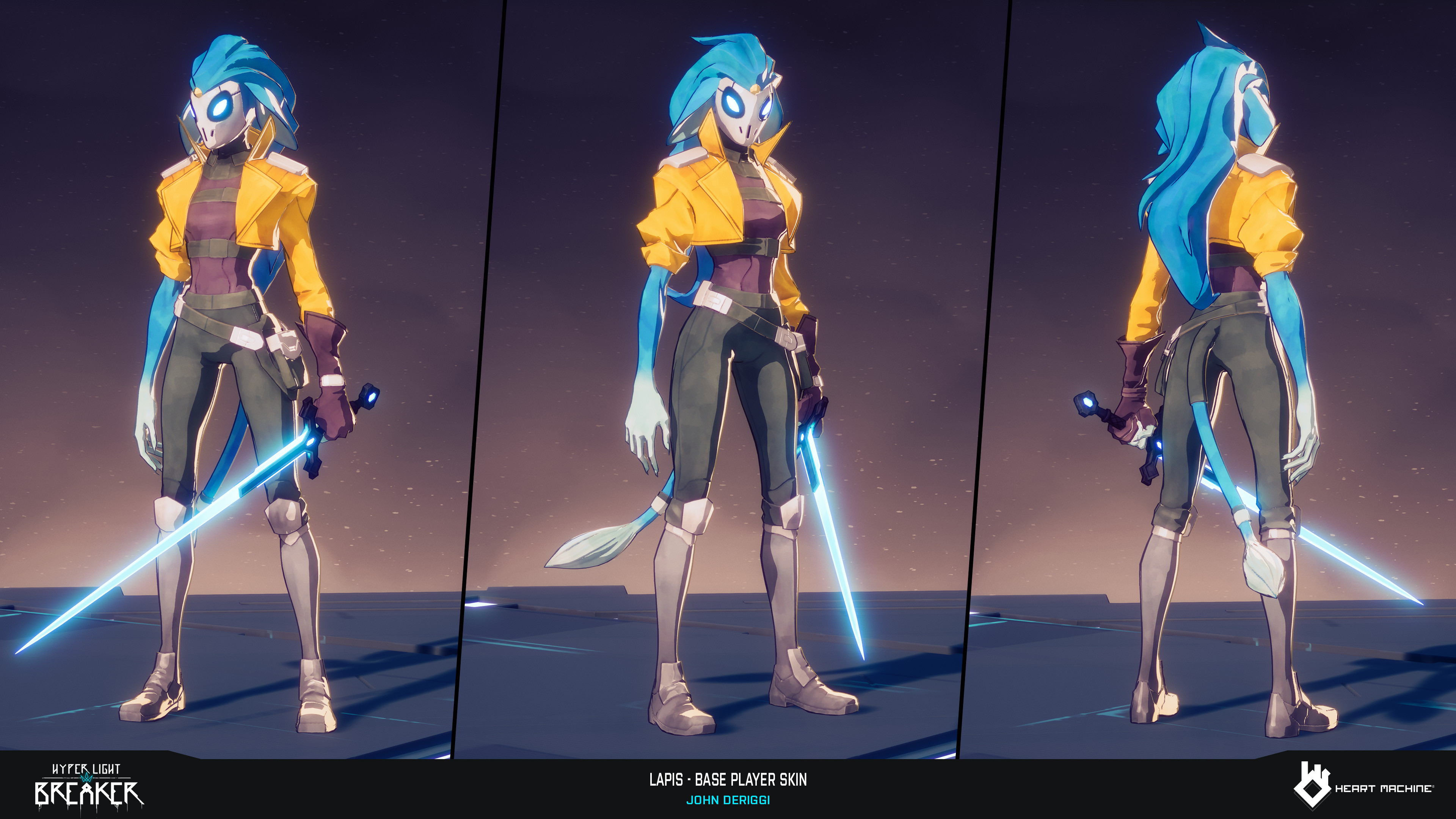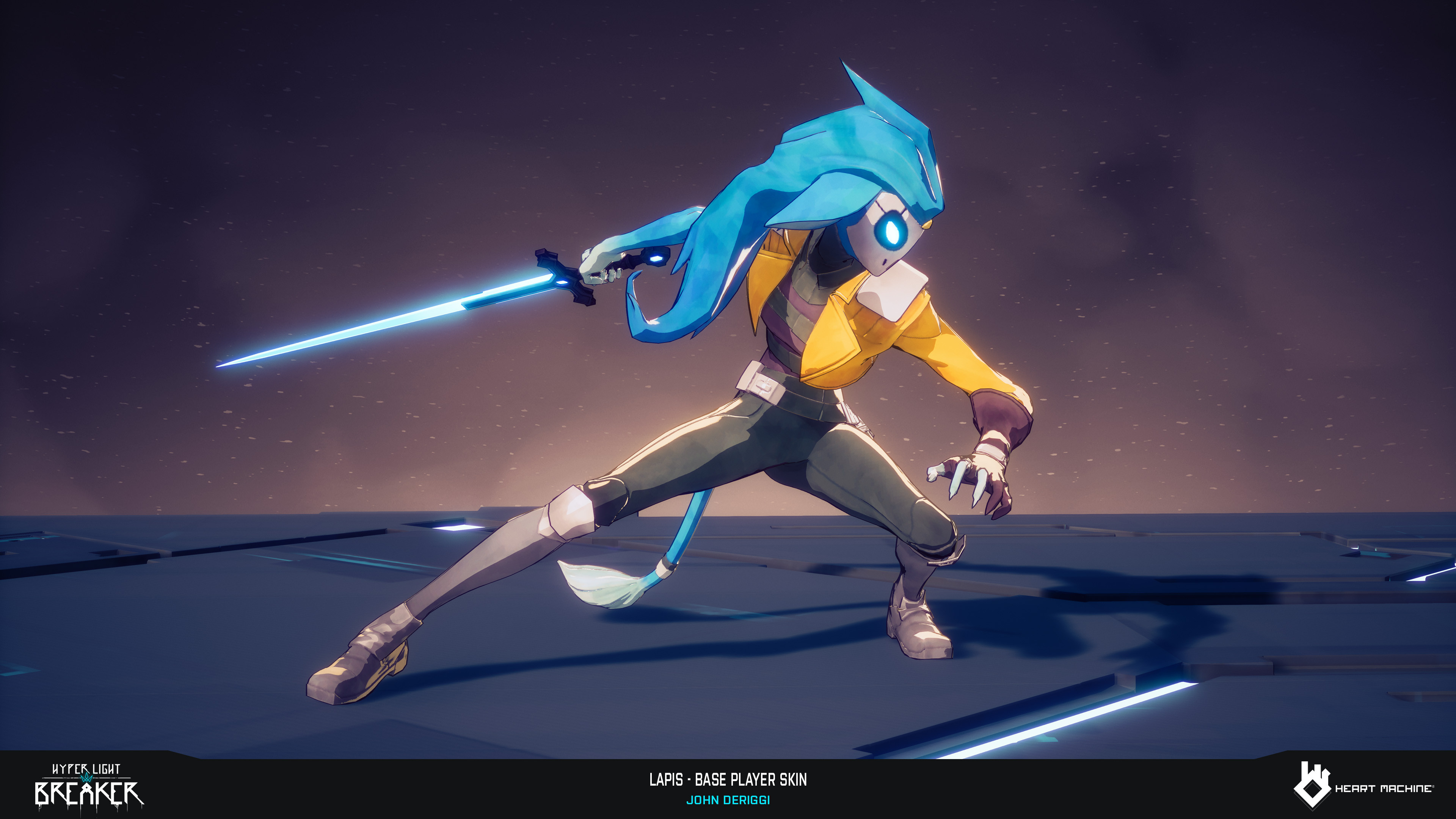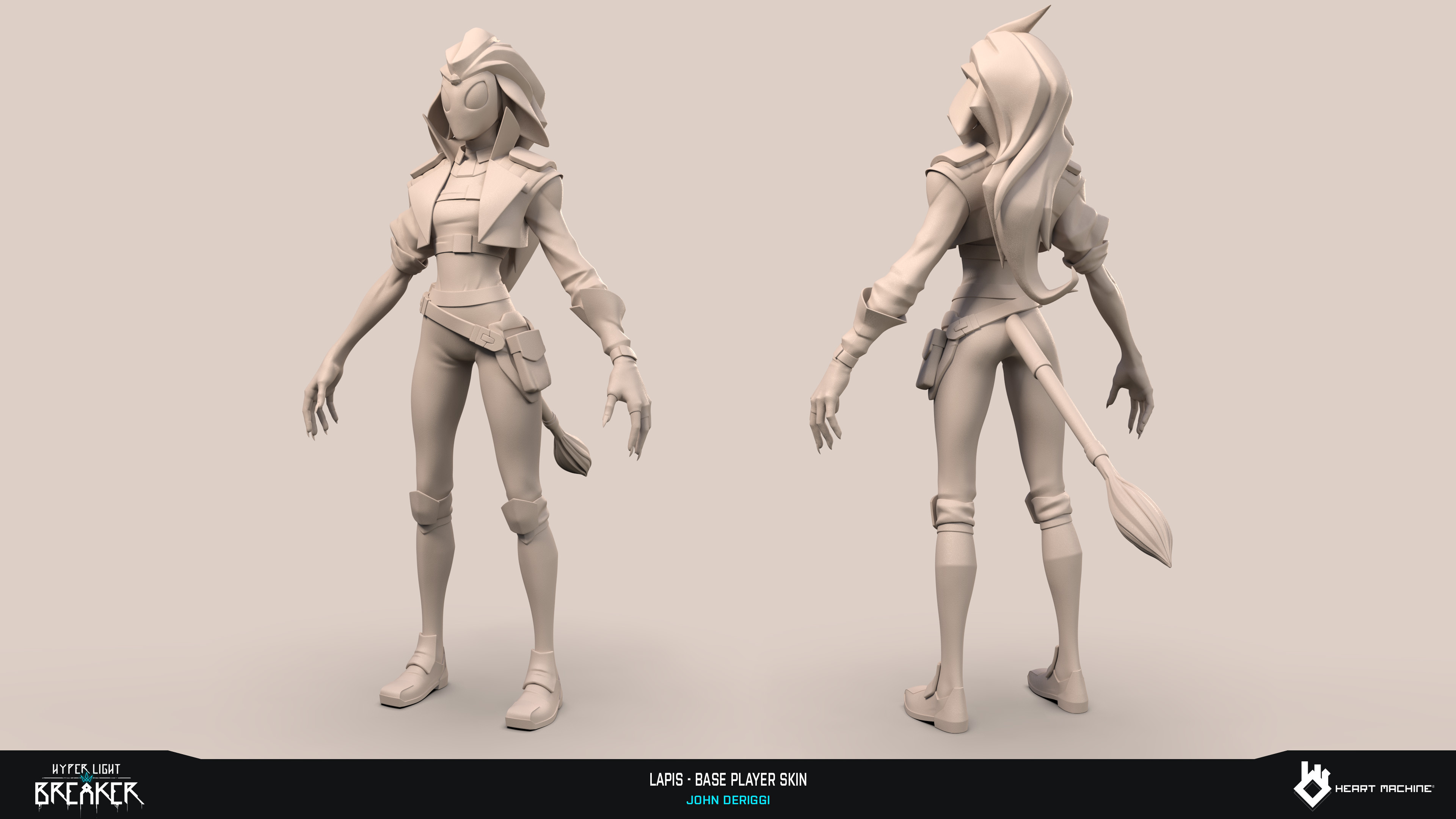 Lapis base player skin for Hyper Light Breaker by Heart Machine. Base Anatomy, Character and Sword Sculpt, Game Model, Lookdev: John DeRiggi. Concept: Isaak Ramos. Rig: Sol Brennan and Chris Bullock. Pose: Sean Ward and John DeRiggi. Zbrush, Maya, Substance 3D Painter, Unreal Engine, Keyshot, Marmoset