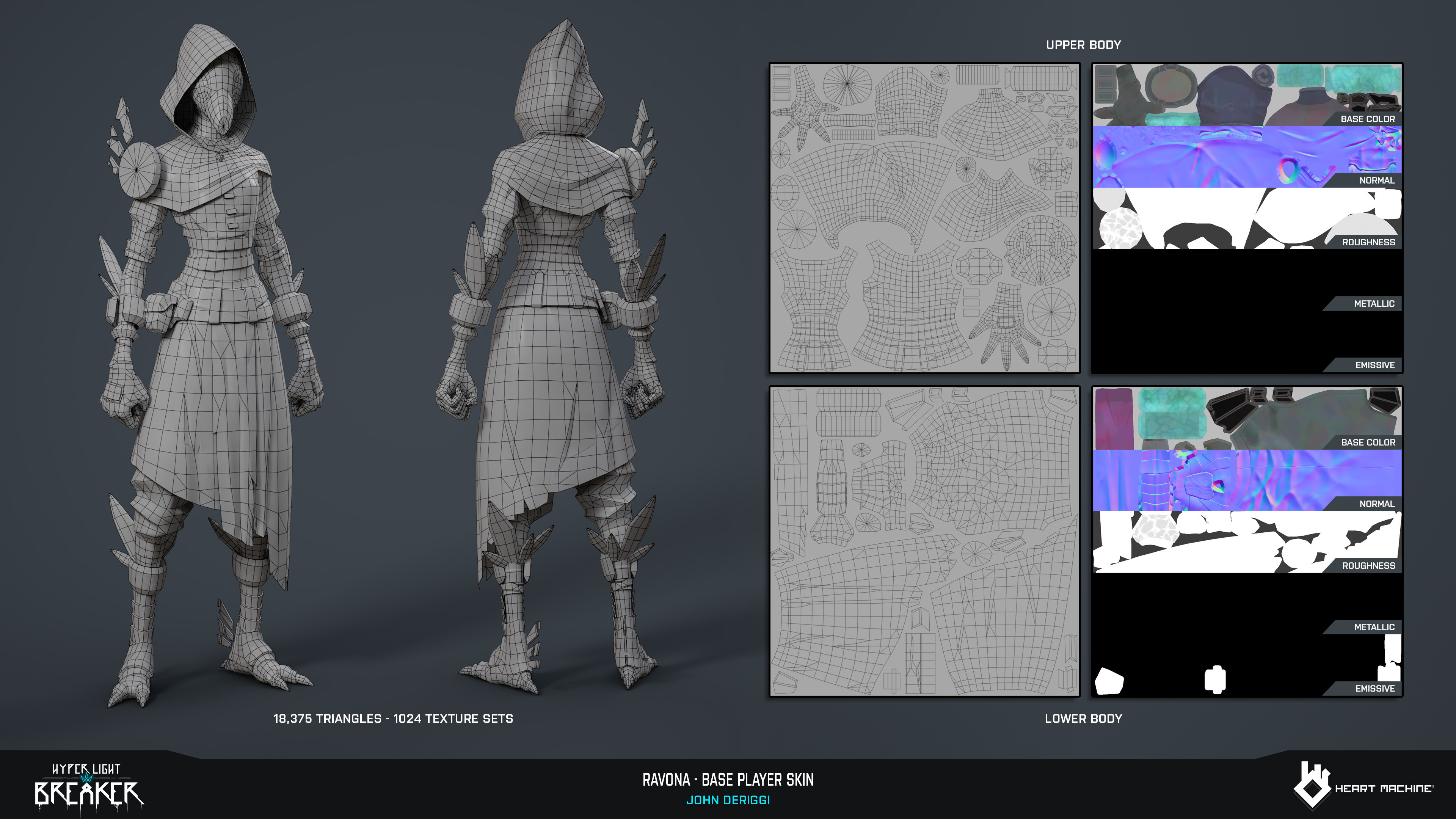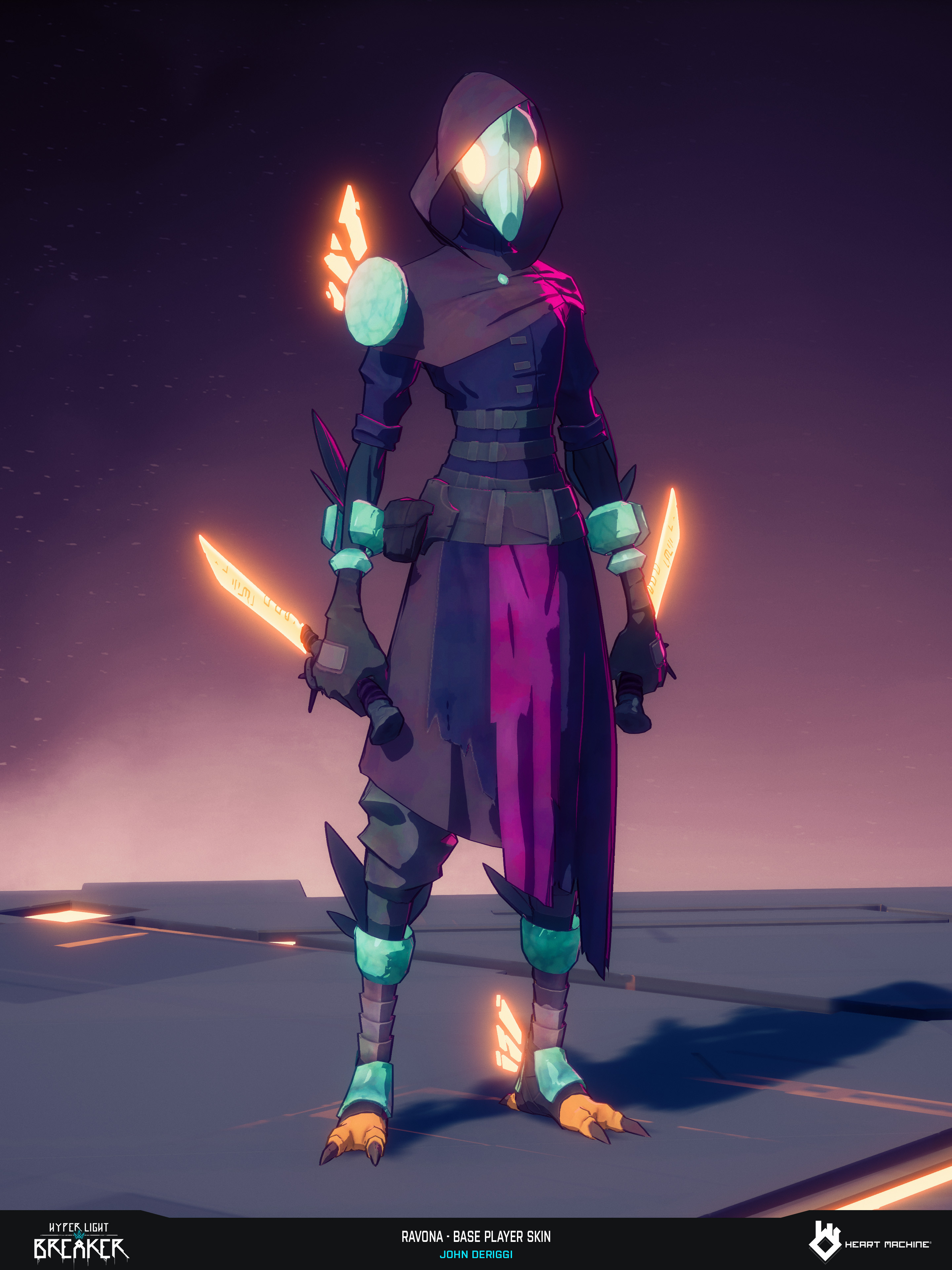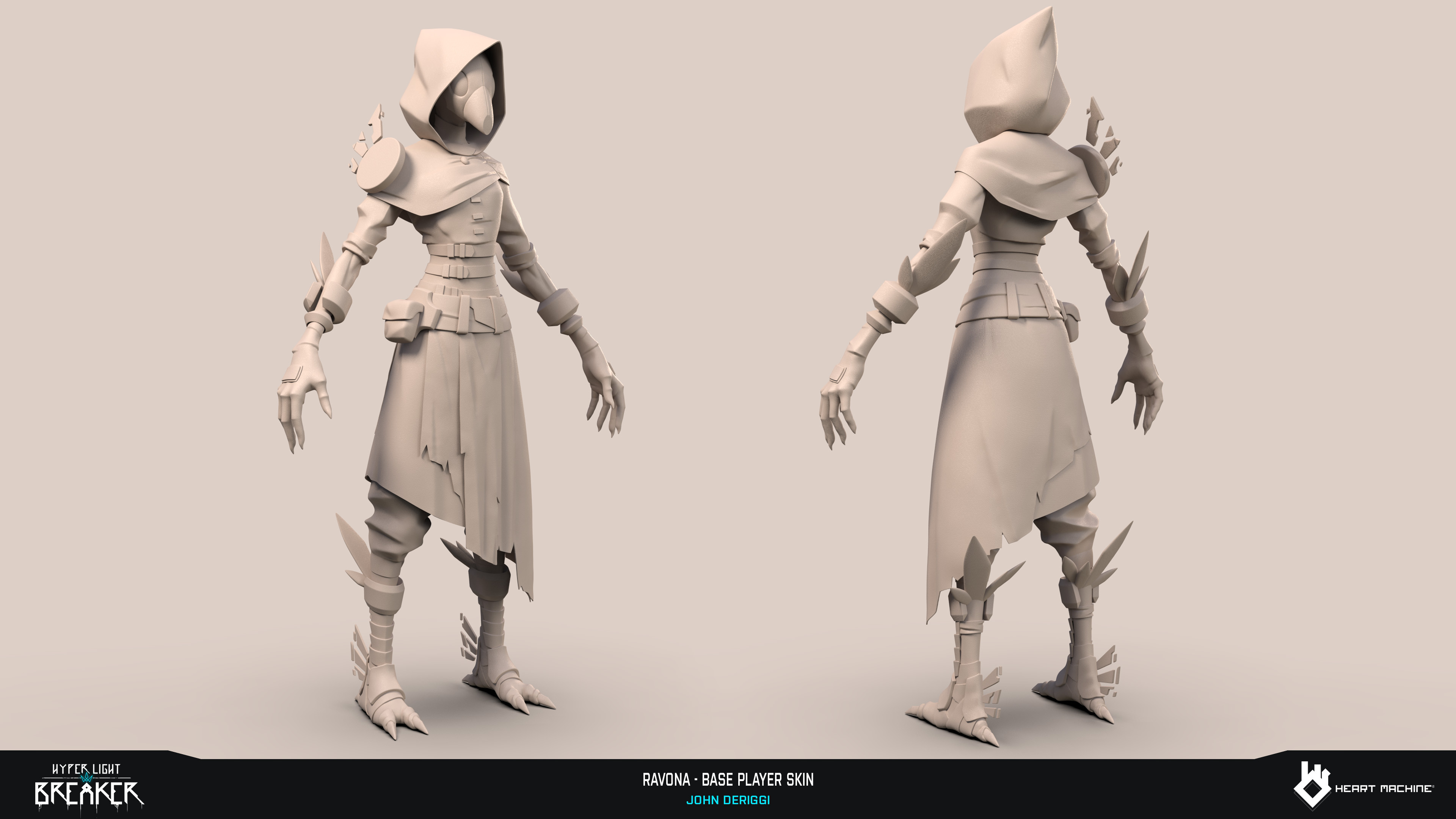 Ravona base player skin for Hyper Light Breaker by Heart Machine. Base Anatomy, Character Sculpt, Game Model, Lookdev, Pose: John DeRiggi. Weapon Model, Lookdev: Cameron Hughes. Concept: Isaak Ramos. Rig: Sol Brennan. Zbrush, Maya, Substance 3D Painter, Unreal Engine, Keyshot, Marmoset