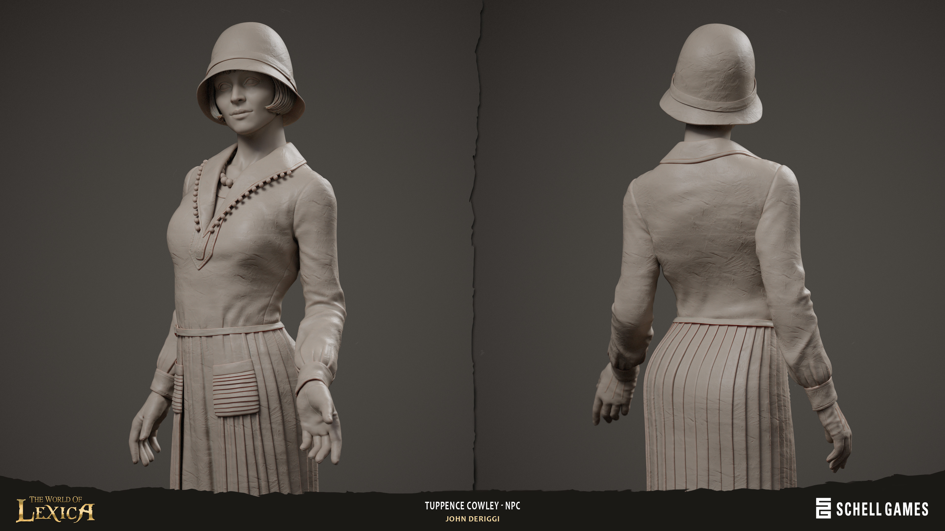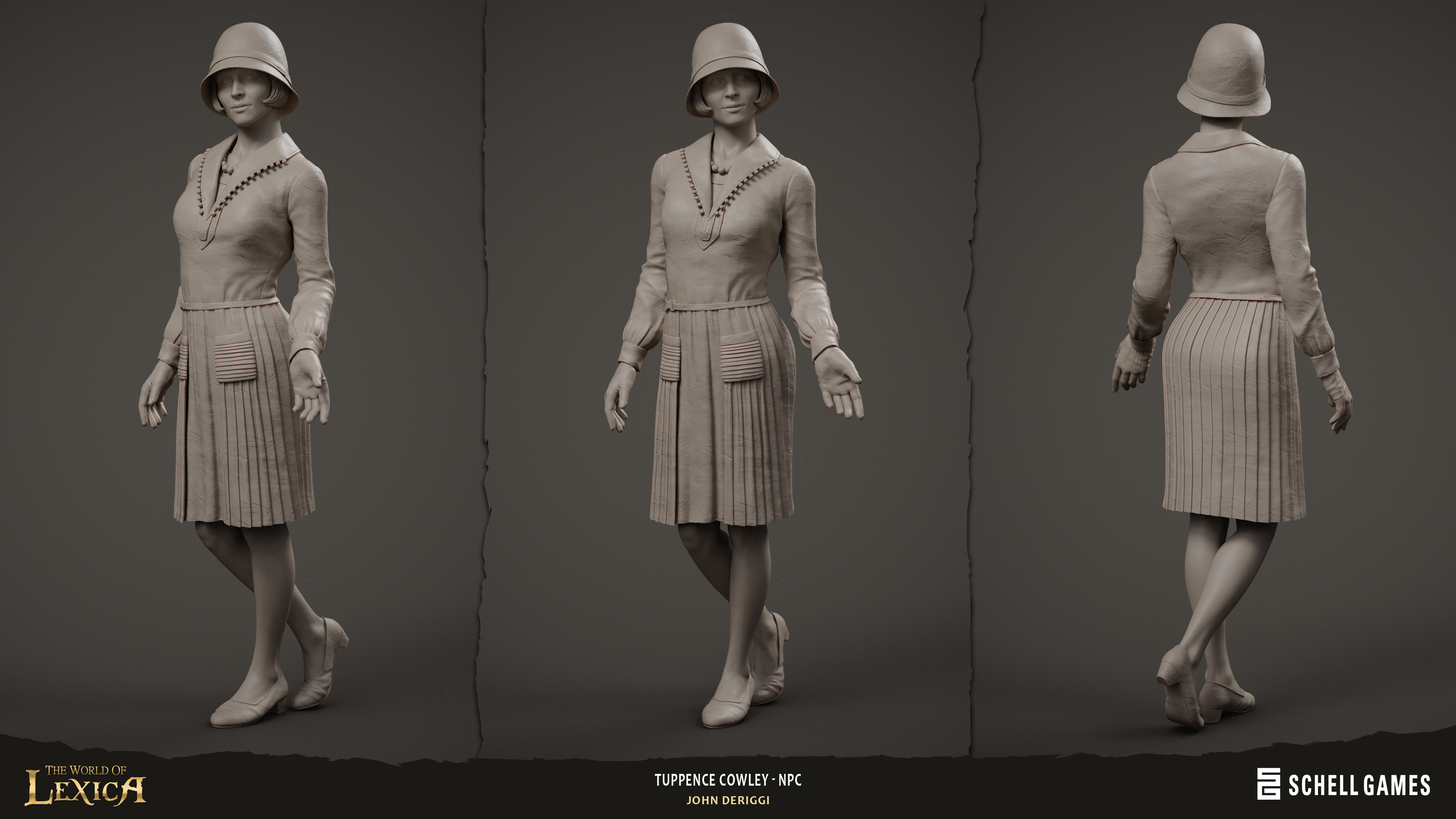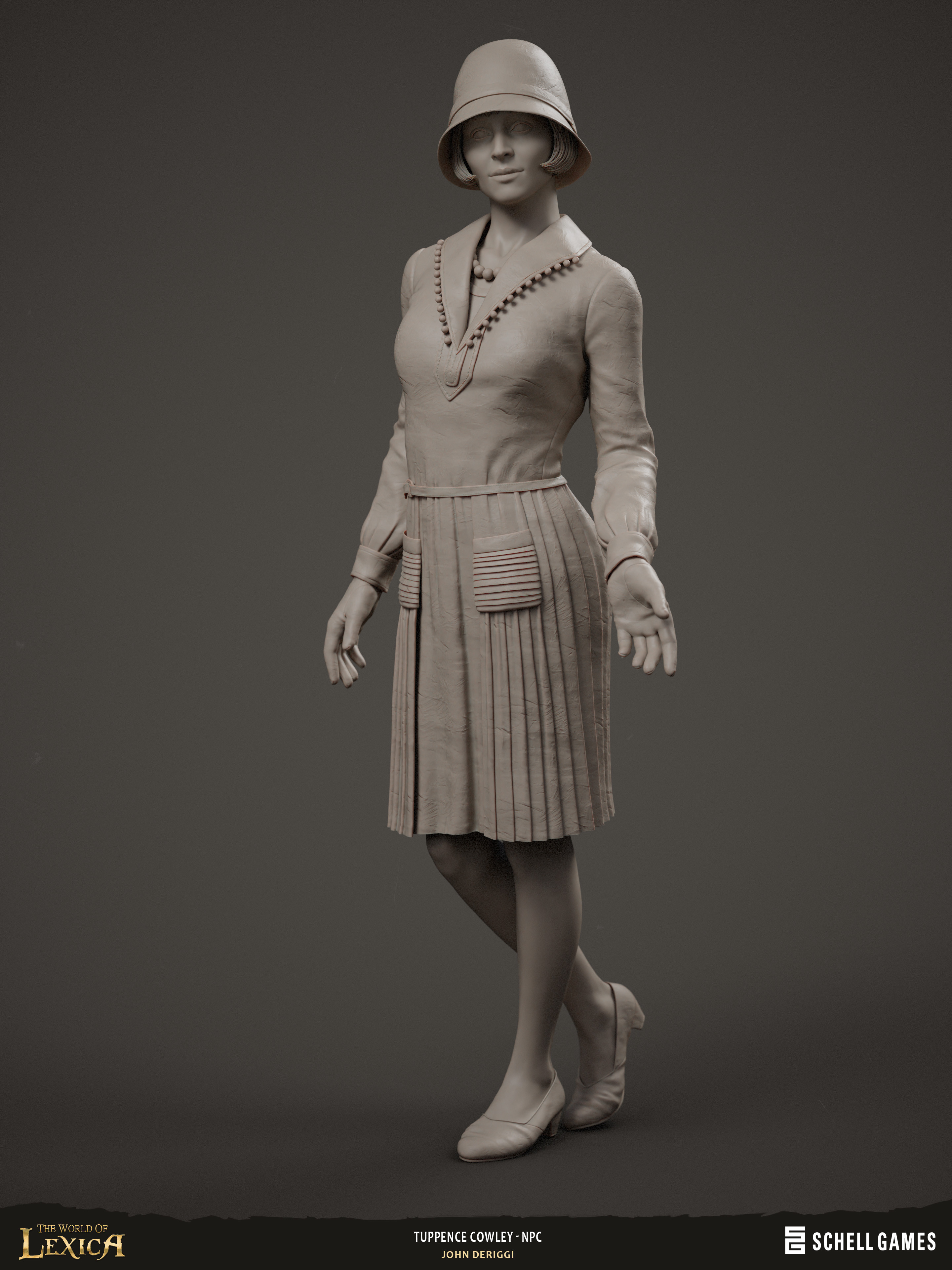 Tuppence Cowley NPC sculpt for The World of Lexica by Schell Games. Concept by Zachary Coe. Art direction by Ben Greene. Based on the detective from Agatha Christie's 1922 book, The Secret Adversary. Zbrush, Marmoset