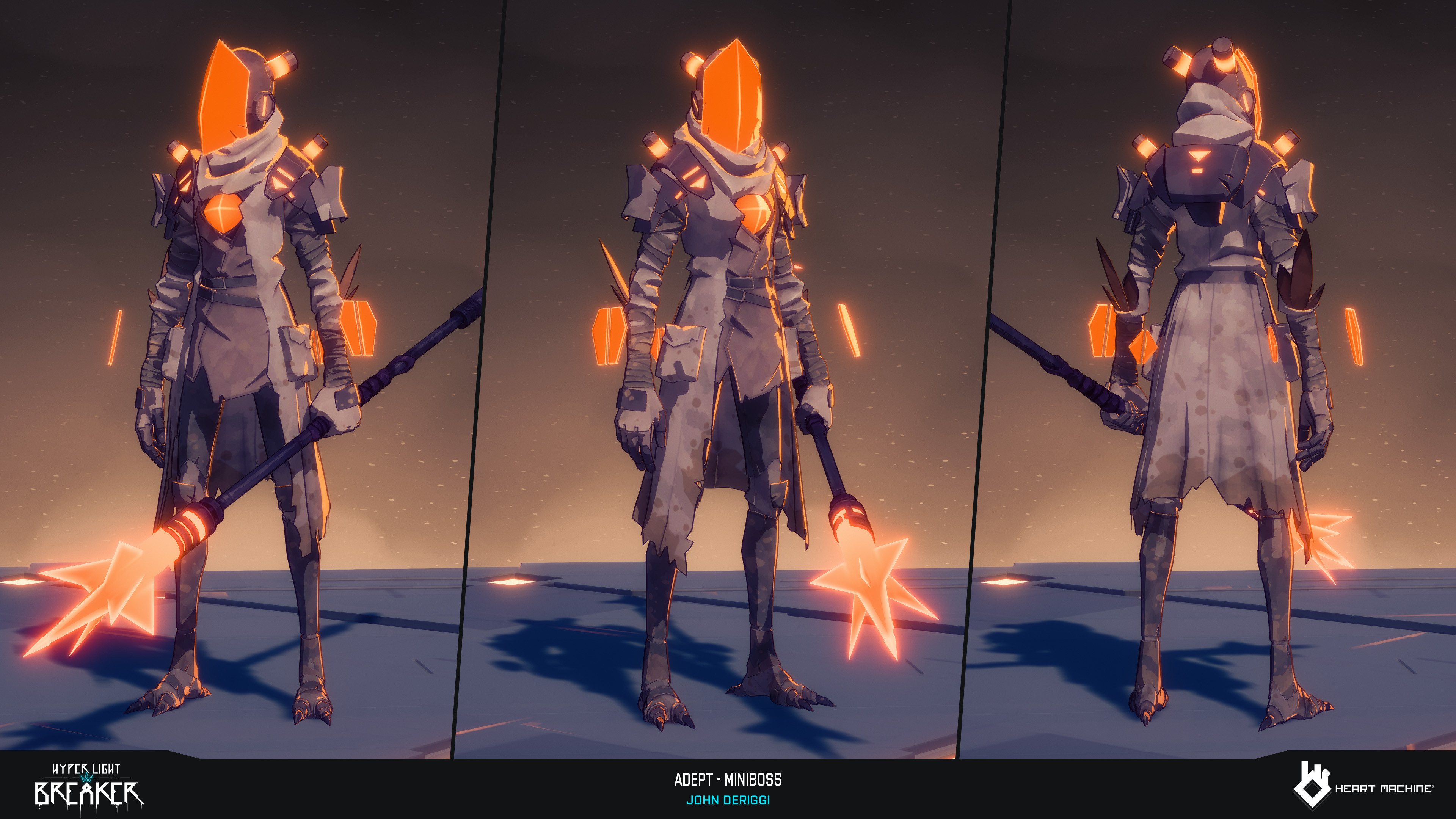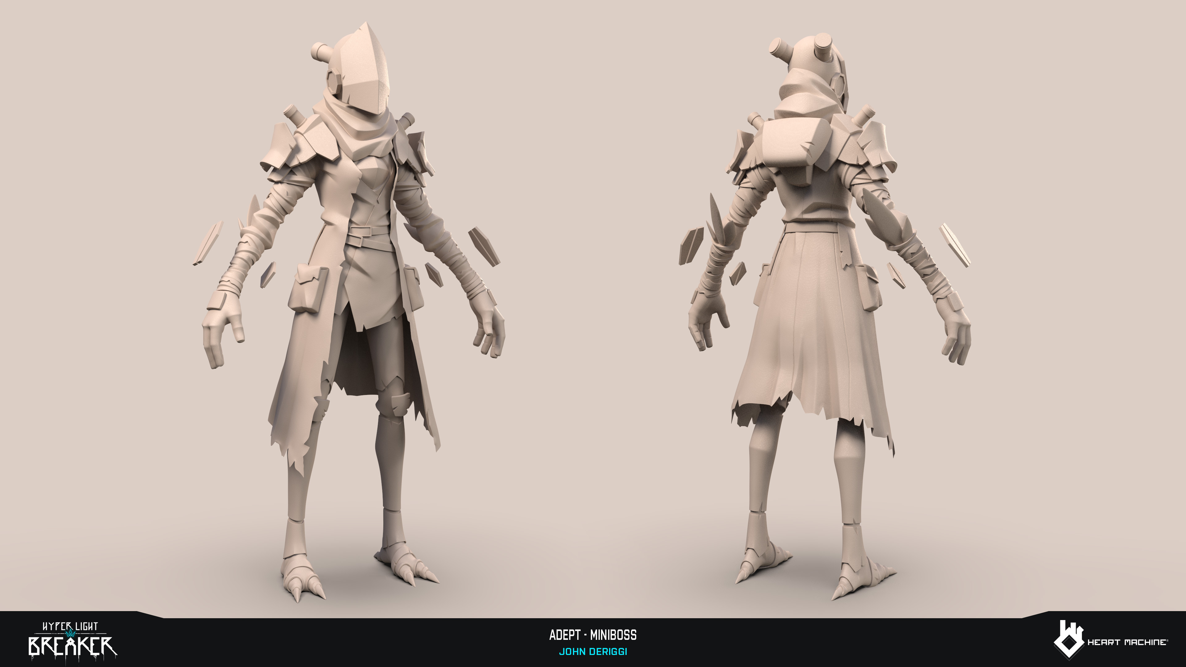 Adept miniboss for Hyper Light Breaker by Heart Machine. Character Sculpt, Game Model, Lookdev: John DeRiggi. Weapon Model, Lookdev: Jack Covell. Concept: Isaak Ramos. Rig: Sol Brennan. Pose: Anna Vrieling and John DeRiggi. Zbrush, Maya, Substance 3D Painter, Unreal Engine, Keyshot, Marmoset