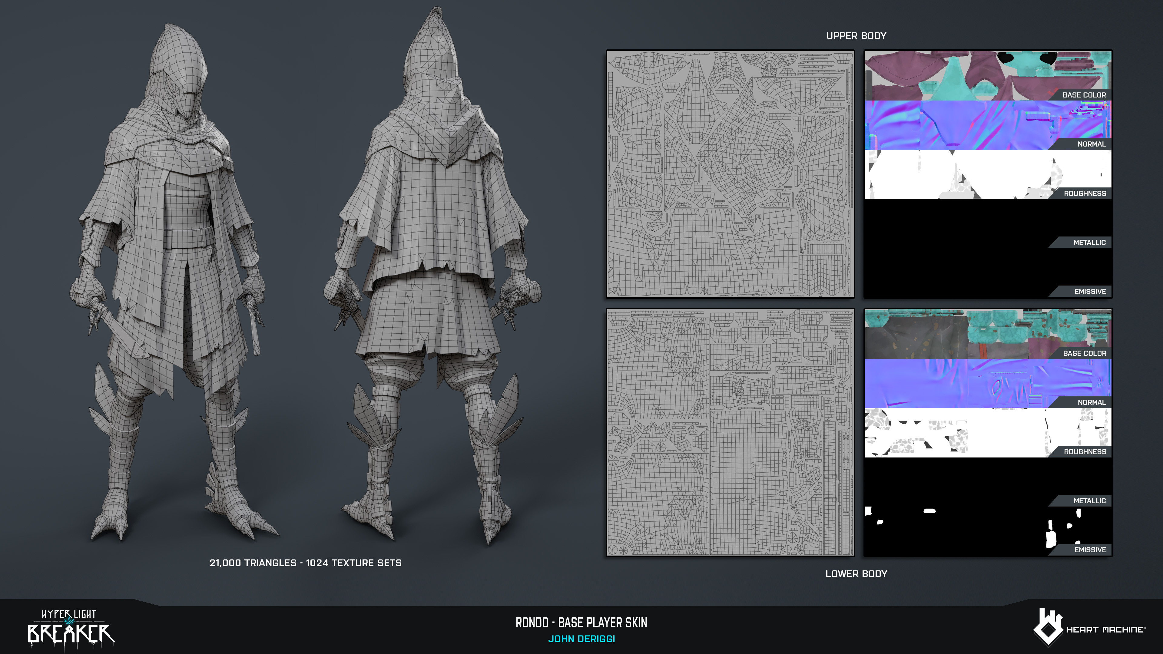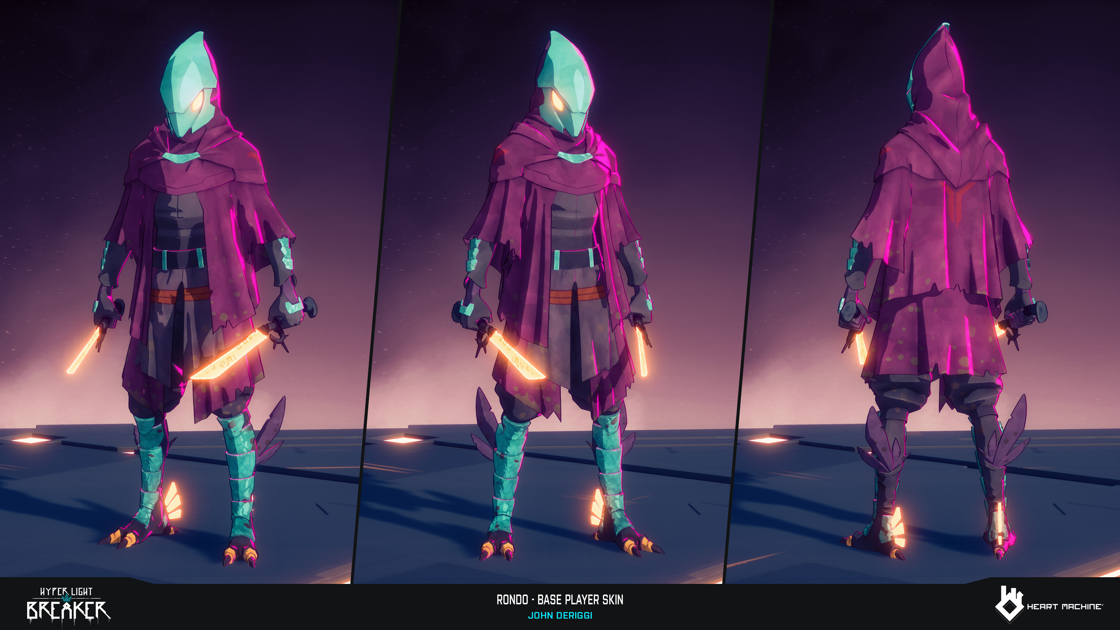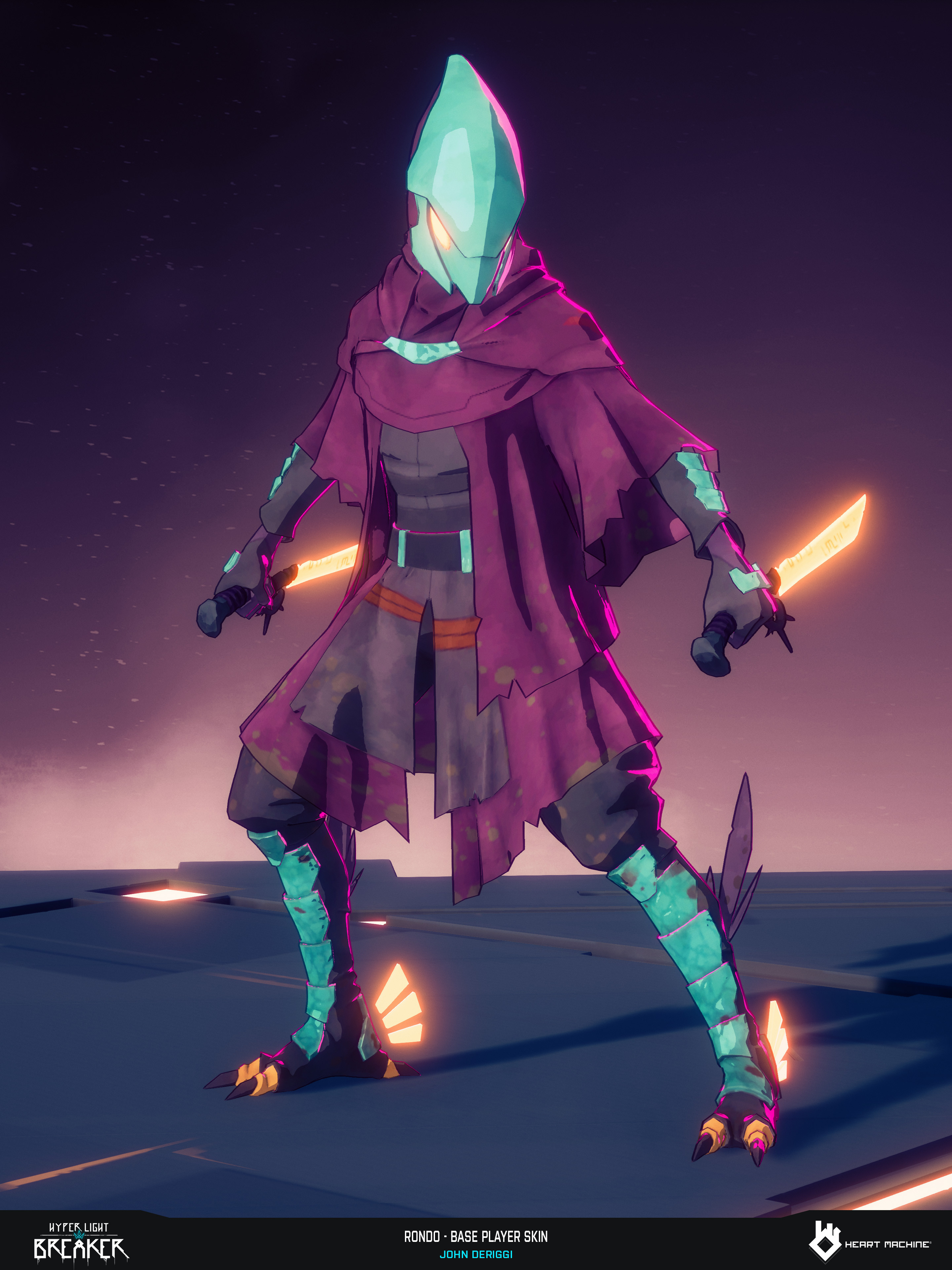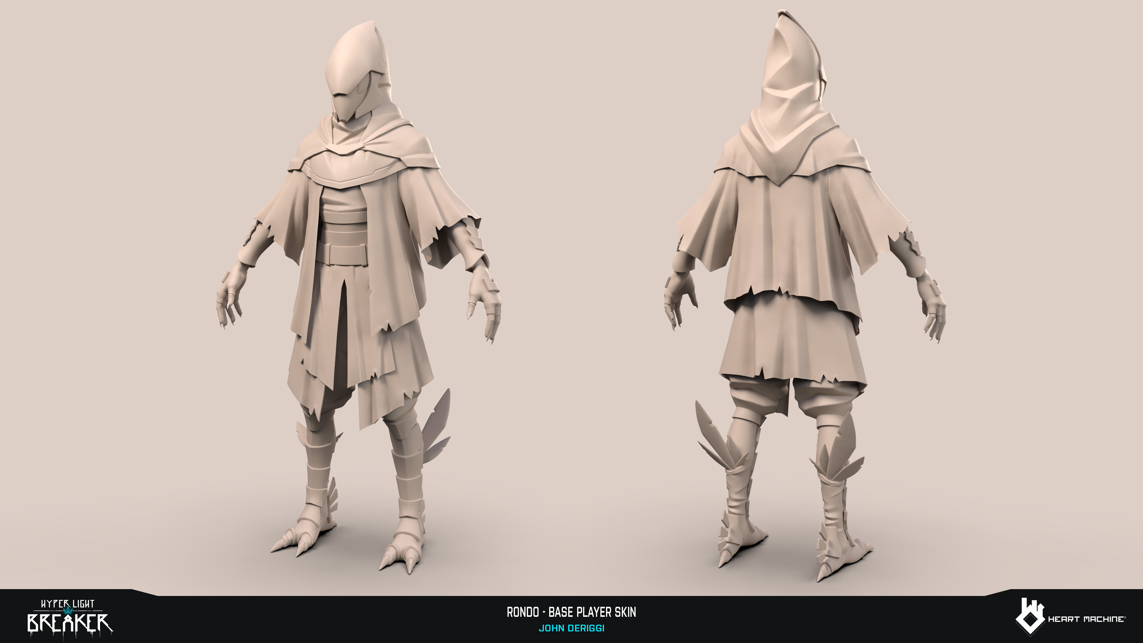 Rondo base player skin for Hyper Light Breaker by Heart Machine. Base Anatomy, Character Sculpt, Game Model, Lookdev, Pose: John DeRiggi. Weapon Model, Lookdev: Cameron Hughes. Concept: Isaak Ramos. Rig: Sol Brennan. Zbrush, Maya, Substance 3D Painter, Unreal Engine, Keyshot, Marmoset