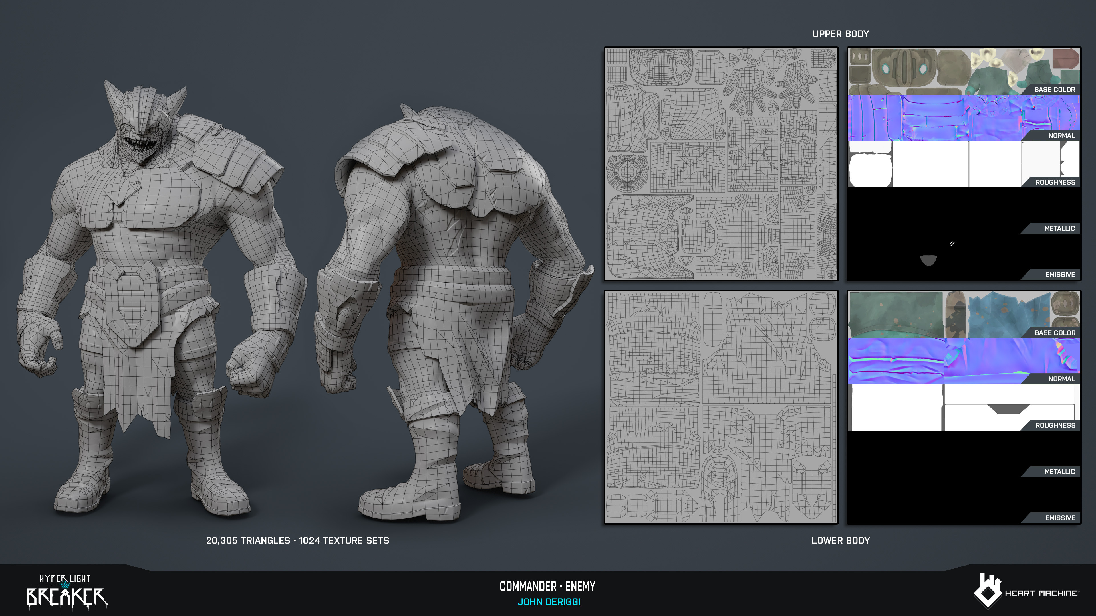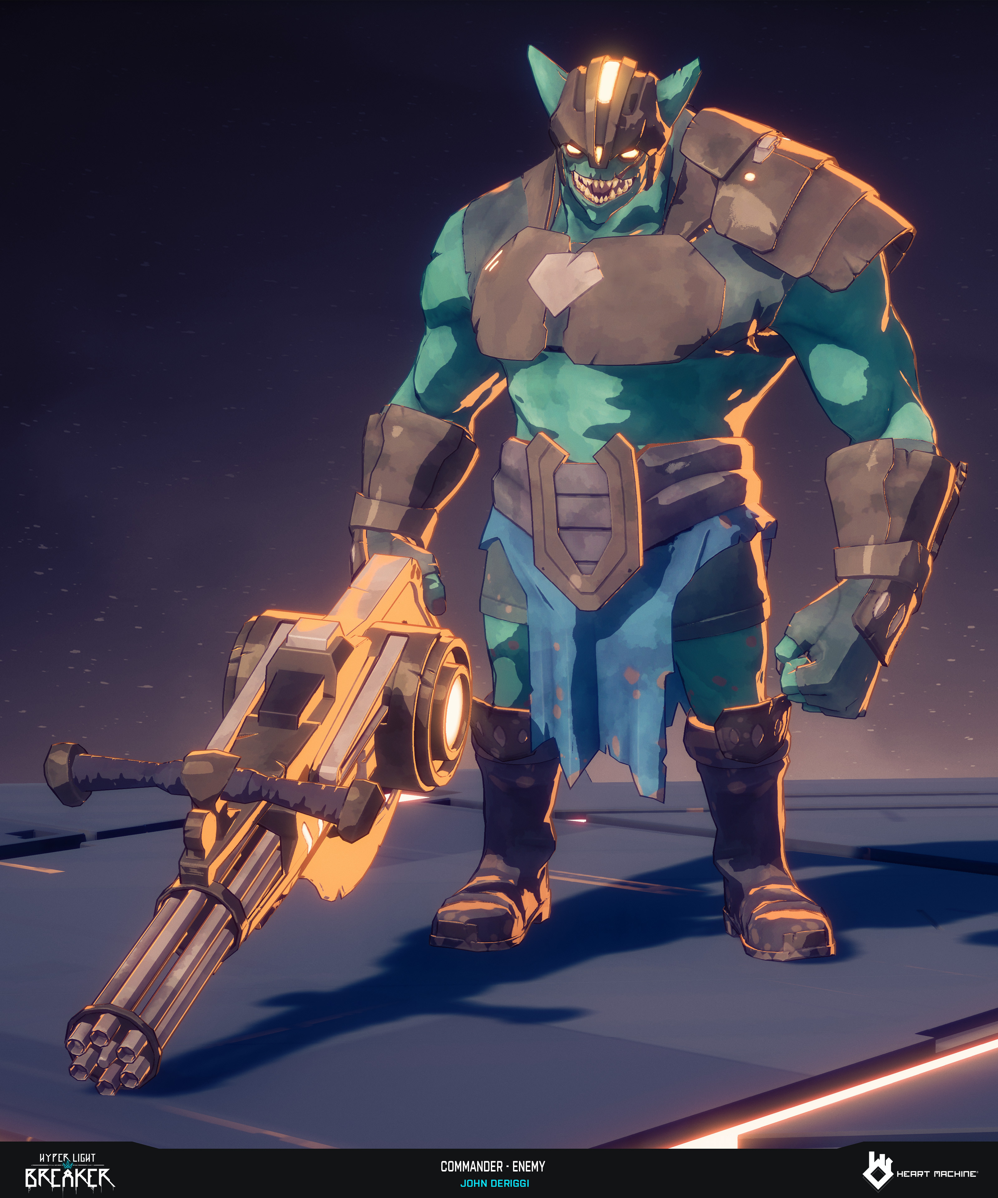 Commander enemy for Hyper Light Breaker by Heart Machine. Character and Weapon Sculpt, Game Model, Lookdev: John DeRiggi. Concept: Isaak Ramos. Rig: Sol Brennan. Pose: Jordan Campbell and myself. Zbrush, Maya, Substance 3D Painter, Unreal Engine, Keyshot, Marmoset.