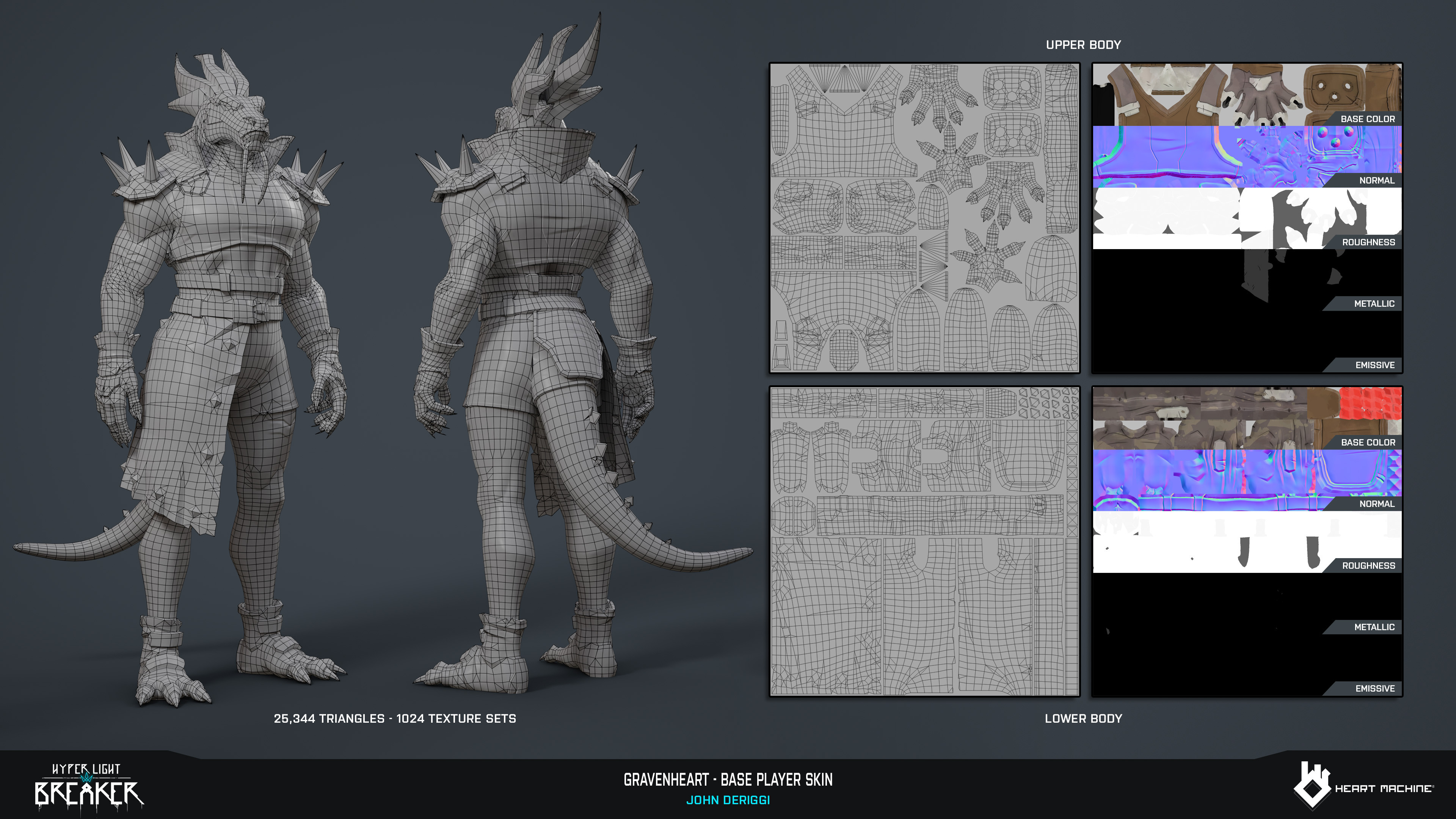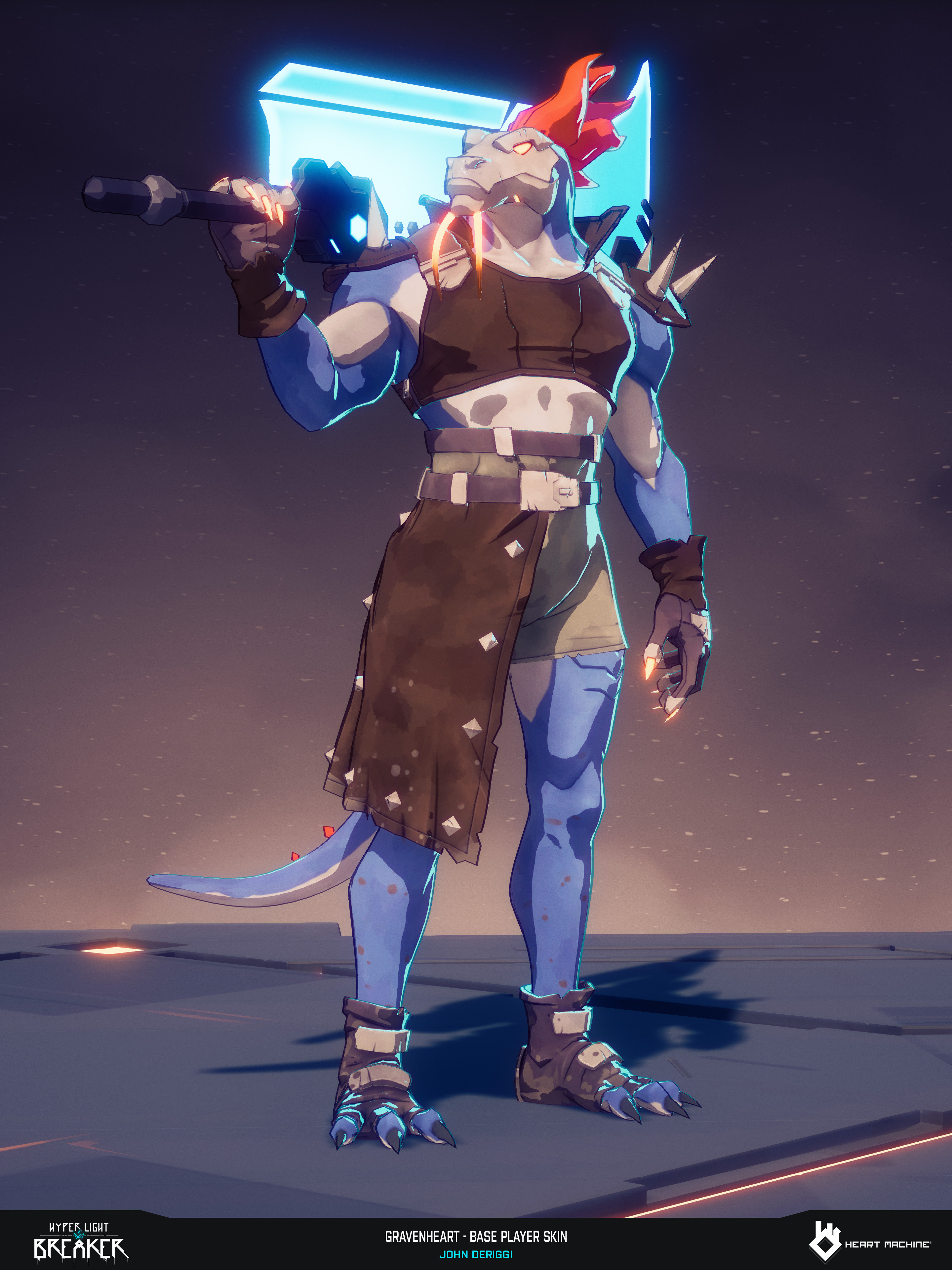 Gravenheart base player skin for Hyper Light Breaker by Heart Machine. Base Anatomy, Character and Weapon Sculpt, Game Model, Lookdev, Pose: John DeRiggi. Concept: Isaak Ramos. Rig: Sol Brennan. Zbrush, Maya, Substance 3D Painter, Unreal Engine, Keyshot, Marmoset