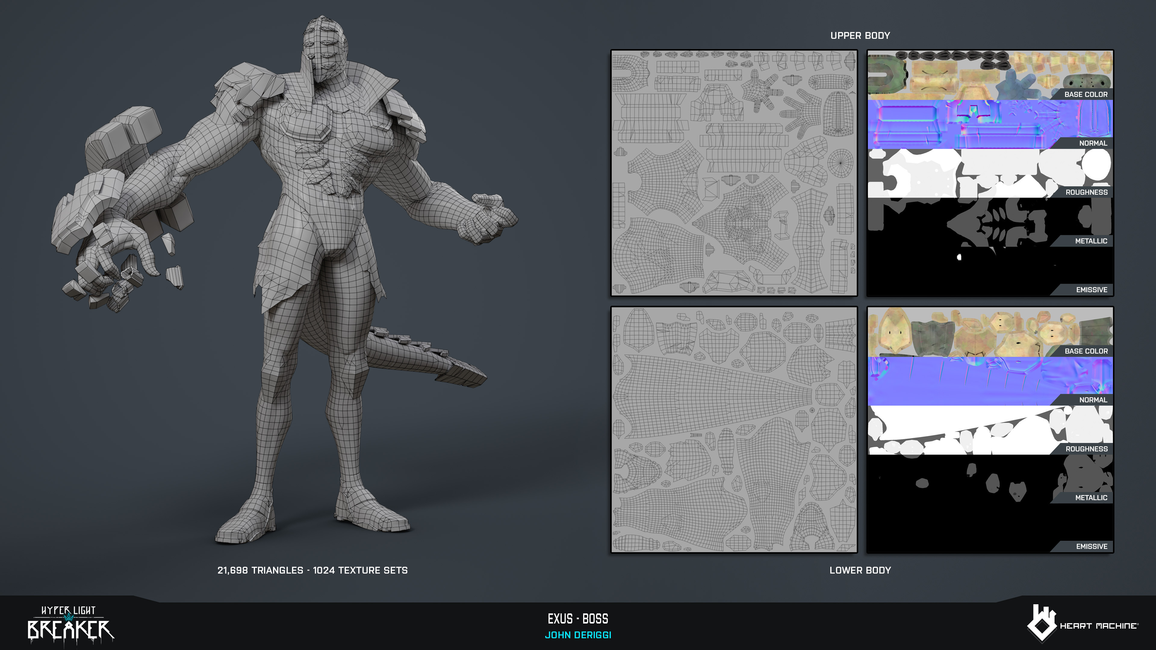 Exus boss for Hyper Light Breaker by Heart Machine. Character Sculpt, Game Model, Lookdev: John DeRiggi. Concept: Isaak Ramos. Rig: Sol Brennan. VFX: Nadir Khabibullin. Poses: Sean Ward and Chris Bullock. Zbrush, Maya, Substance 3D Painter, Unreal Engine, Keyshot, Marmoset